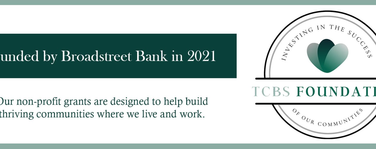 Broadstreet Bank founded the TCBS Foundation in 2021 to offer support for non-profit groups served by Broadstreet Bank.